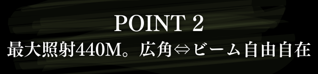 ライトのヘッド部分を操作することで広角⇔ビームが一瞬で切り替わる。