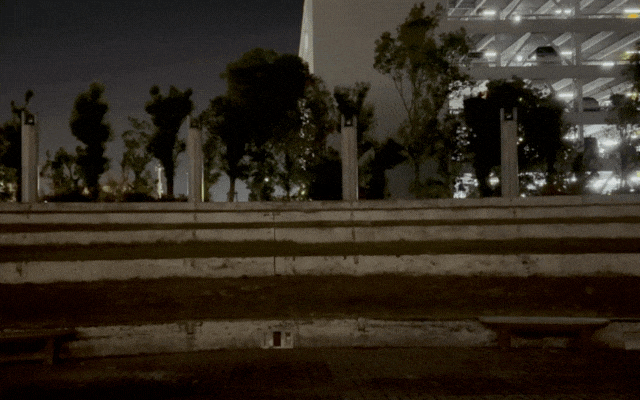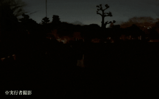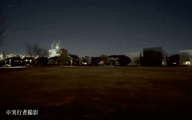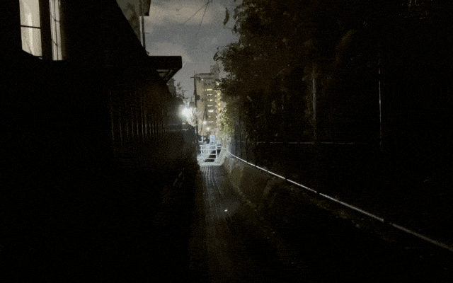 200メートル以上離れた建物にもしっかりと光が当たっているのがわかります。