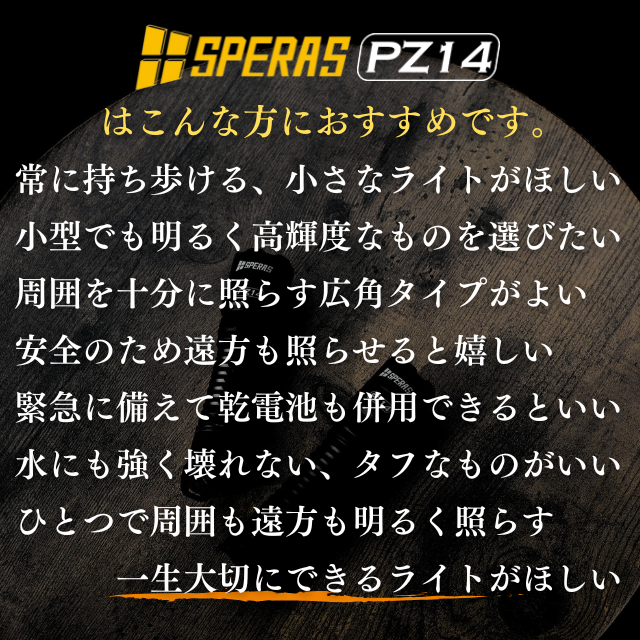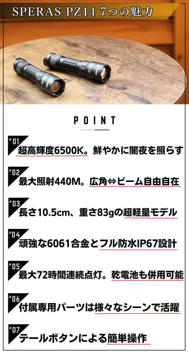 広域を照らし、かつビーム機能により遠方への照射も可能な『SPERAS PZ14』。そんなPZ14のもうひとつの魅力が