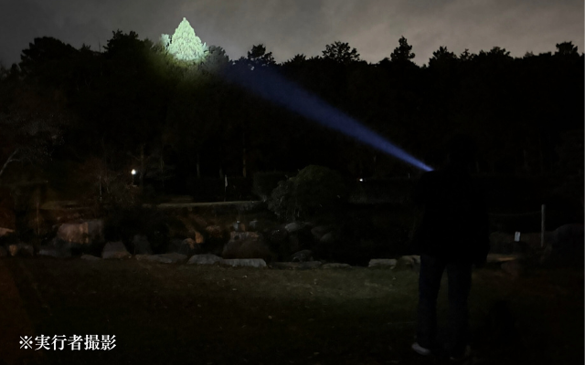 最長距離440メートルを誇るビーム照射なら山頂の木々も昼間のように照らします。