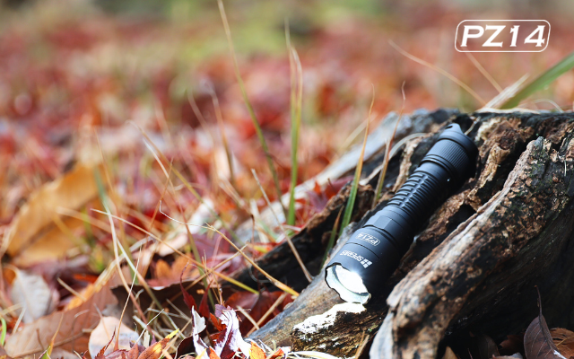 最大照射距離440M、高輝度6500K、長さ10.5cmの小型サイズに広角とビーム照射が切り替わるズーム機能を搭載したPZ14は、