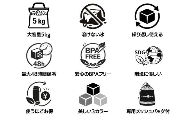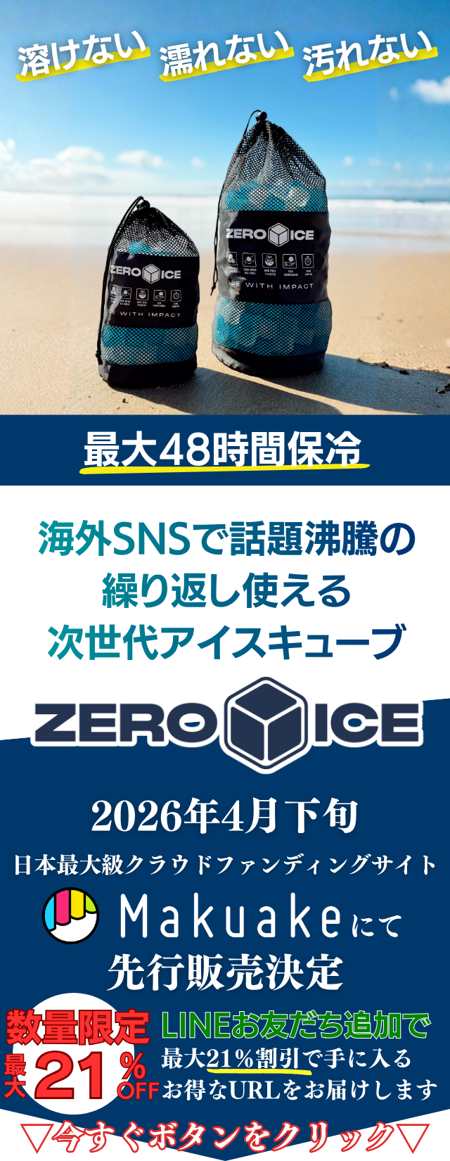 圧倒的な保冷力と使いやすさ、そして持続可能な社会の実現に貢献する『ZERO ICE』は、まさに今世界で広まりつつある次世代アイスキューブ。