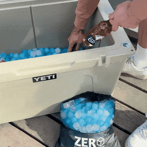 48時間冷却は伊達じゃない。大量のキューブで隙間なく埋め尽くすZEROICEは、中の飲み物も食べ物もガッツリ冷やします。