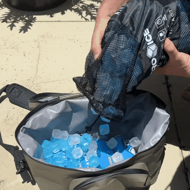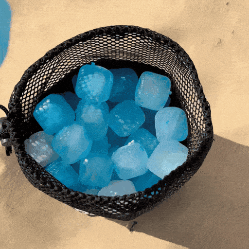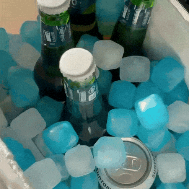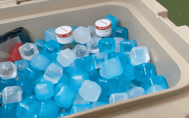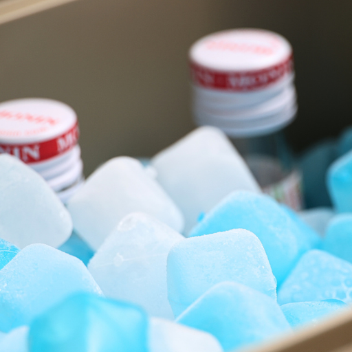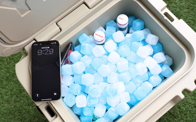 レギュラーサイズは合計300キューブ、重さ4.5kg。大量の溶けない氷が、クーラーボックスの飲み物や食材をキンキンに冷やします。