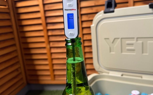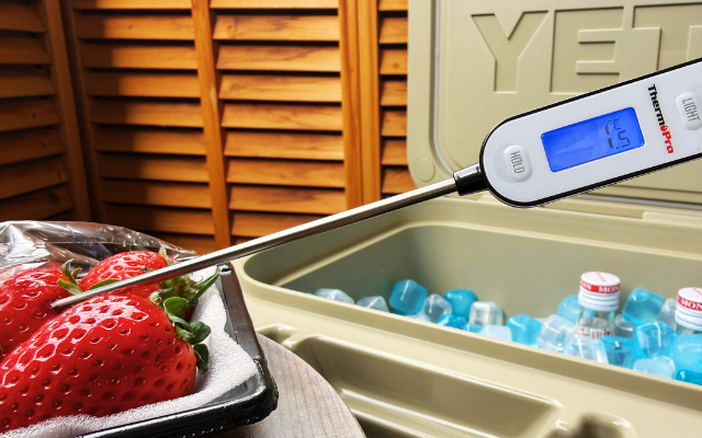 保冷から48時間経過。クーラーボックスの庫内温度は-0.5℃。表面のZERO ICEは溶けているものの、丸2日経っても内部温度は氷点下を保っています。