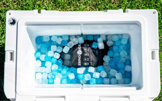 高密度で開閉時の温度ロスを抑えられるZERO ICEなら、小型のクーラーボックスでもしっかり